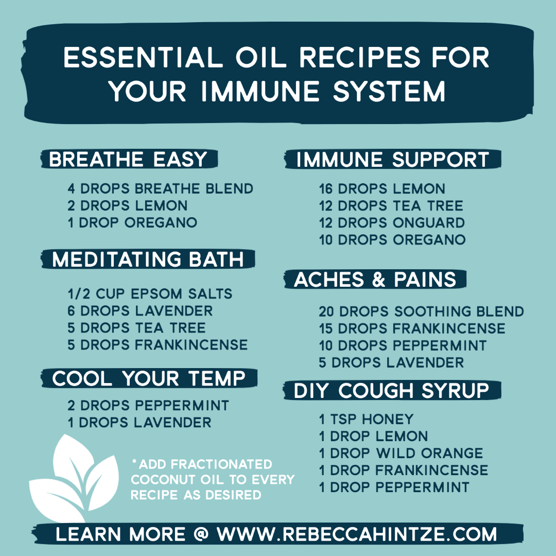 Oregano, Frankincense, and On Guard — This trio of oils are powerful for supporting your immune system and eliminating bacteria and germs. When seasonal threats are high, Taking essential oils internally is a good way to utilize their immune-boosting properties. Take two drops of each in a veggie capsule every morning or apply to bottoms of feet for daily immune support.