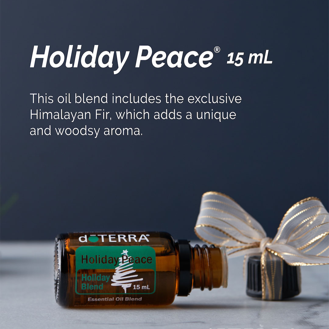 - Create a spritzer with a few drops of Holiday Peace and mist your holiday décor for a grounding, woodsy scent